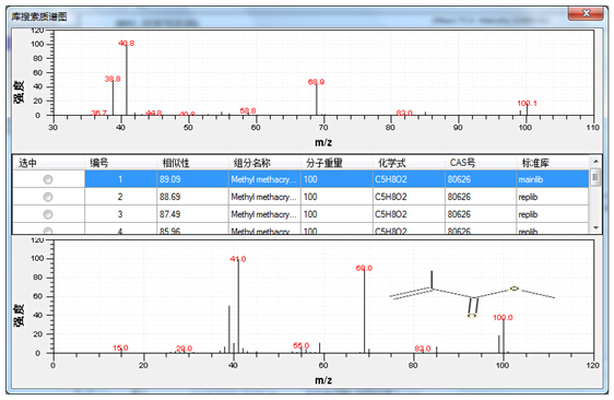 圖2.3 三重峰的質譜圖(圖2.2中8.6~8.9 min)經NIST2014庫確認