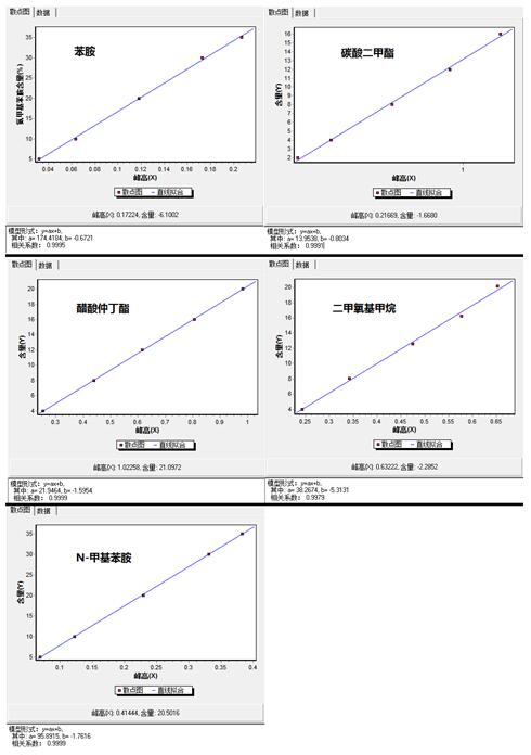 2.2.2 校準用的標準物質:苯胺、N-甲基苯胺、二甲氧基甲烷、乙酸仲丁酯、碳酸二甲酯均為分析純或分析純以上級別試劑(中國石油科學研究院提供)。
