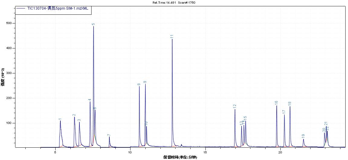 樣品在檸檬酸鹽緩沖溶液介質中,用連二亞硫酸鈉還原分解以產生可能存在的致癌芳香胺,用專用顧鑫萃取小柱提取溶液中的芳香胺,濃縮,定容,用GC-MS氣質聯用儀進行測定。以目標物的保留時間和標準質譜圖定性,外標法定量。