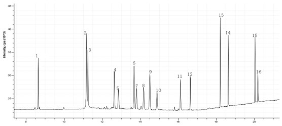 圖1.  16種有機(jī)磷標(biāo)準(zhǔn)溶液TIC圖
